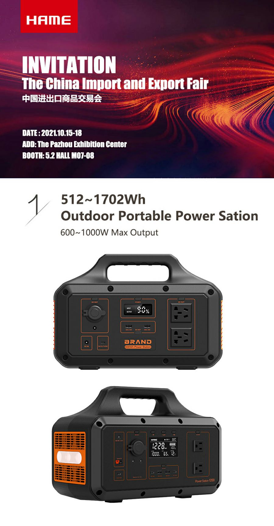 米兰官网·网站-米兰(中国)携户外储能电源和MagSafe移动电源出席第130届广交会线下展览,展台位于广交会展览馆A区5号馆5.2 M07~08,欢迎莅临。