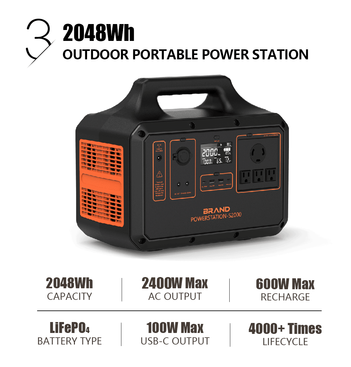 电池采用自研40Ah大单体磷酸铁锂电芯,拥有4000+次超长循环寿命,内阻小于0.5毫欧。对比相同容量产品,所需电芯数量更少,降低电芯均衡、温控等电池管理难度,整体性能更加安全可靠。 户外电源产品容量规格多样性,输出功率有大有小,可覆盖众多用电场景,比如露营、路演、户外工程、长途旅行、房车生活等。